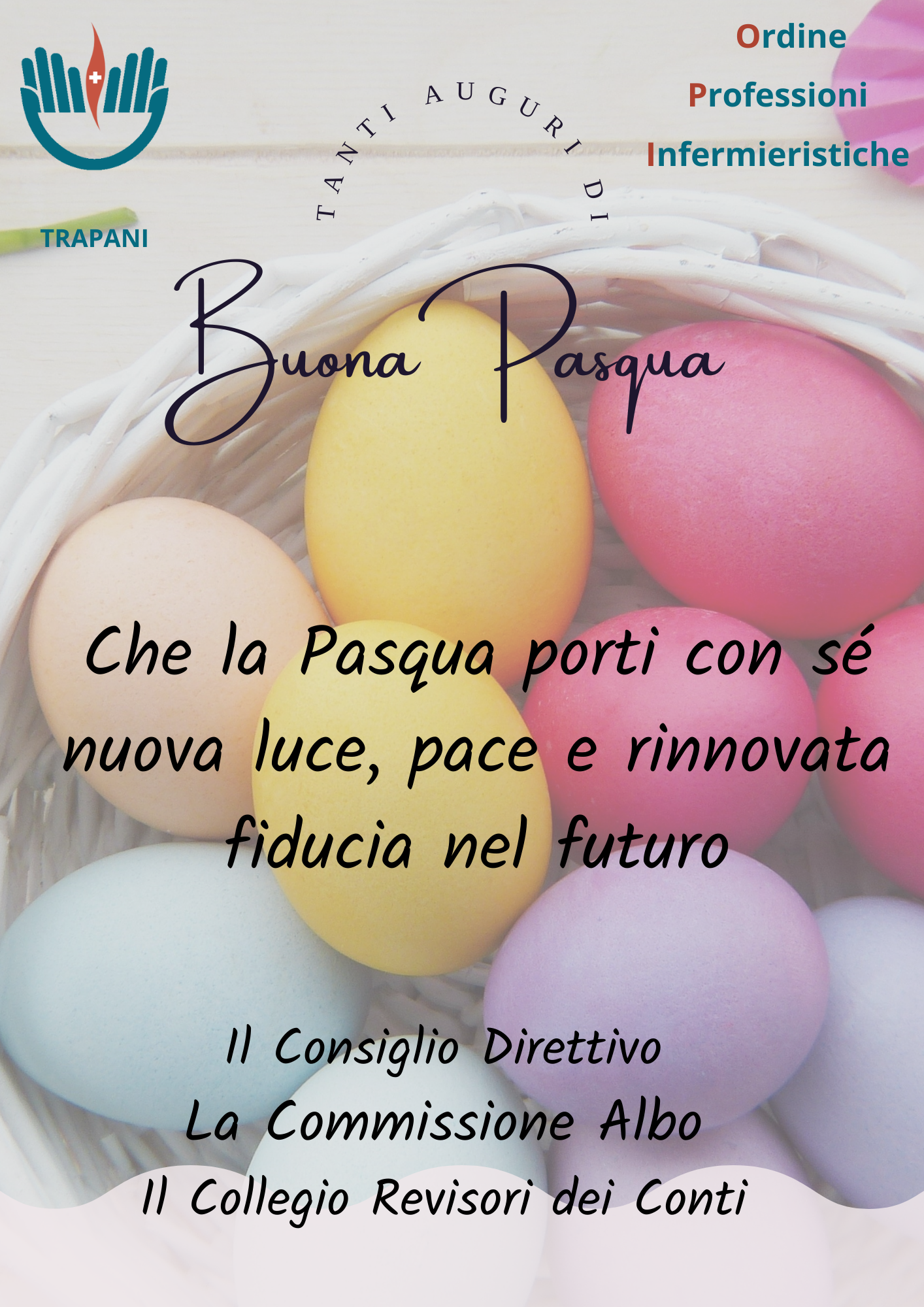 In occasione della Santa Pasqua, il Consiglio Direttivo, la Commissione Albo Infermieri, il Collegio Revisori dei Conti dell’OPI Trapani desiderano porgere a tutti i colleghi e alle loro famiglie i più sentiti auguri.